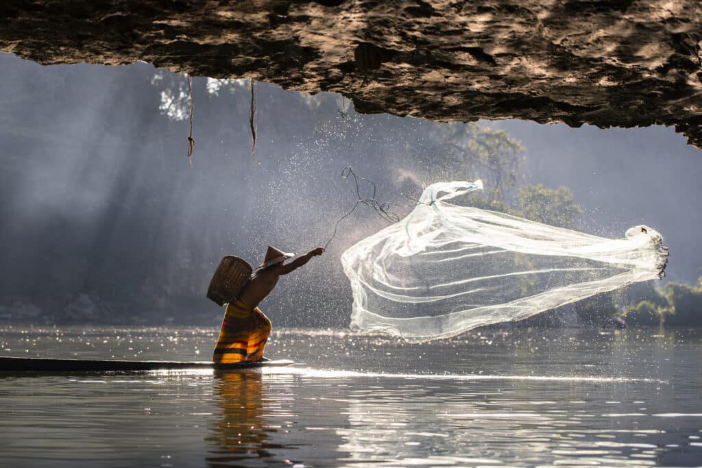“A fisherman tries to catch the daily food for his family using a traditional technique in Myanmar,” Bodolai explained. “The picture was taken on the lake Inle in 2019. I was lucky with the nice warm lights which give a nice extra touch, a glory to this beautiful moment.”