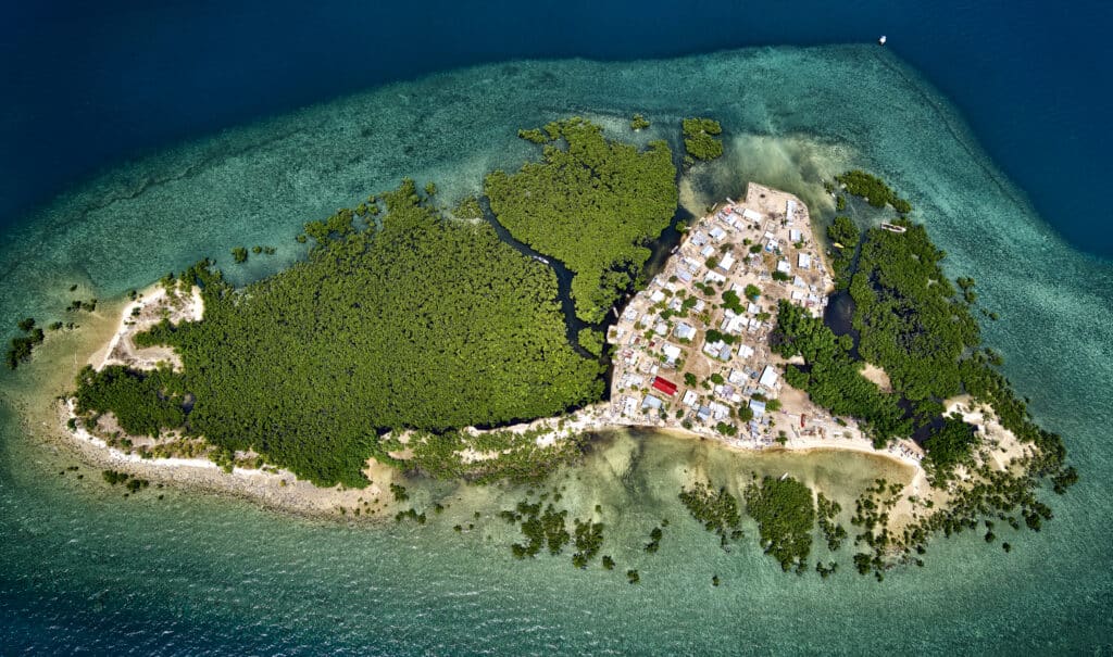 “Coastal village, Solomon Islands. The large village of Haghalu is located on the south coast of Ngela Sule island in Central Province of the Solomon Islands,” Chape said. “The elevation of the village ranges from 1-5 metres above sea-level and is surrounded by coral reefs and deeper sea that support village livelihoods and food security by providing marine resources. Like all Pacific islands coastal villages Haghalu is vulnerable to climate change[,] particularly rising seas and extreme weather events.”
