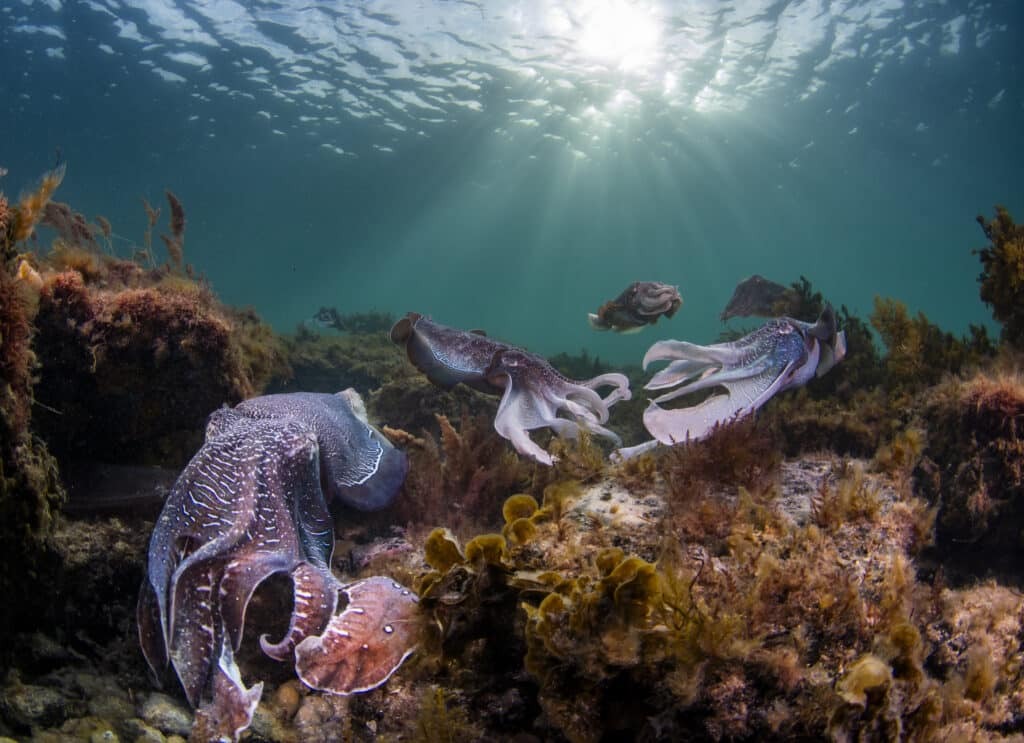 “During the winter months, hundreds of thousands of giant cuttlefish (Sepia Apama) aggregate in the shallow waters of the upper Spencer Gulf in South Australia,” Sly explained in a statement. “The cuttlefish arrive here with just one thing on their minds: mating!”